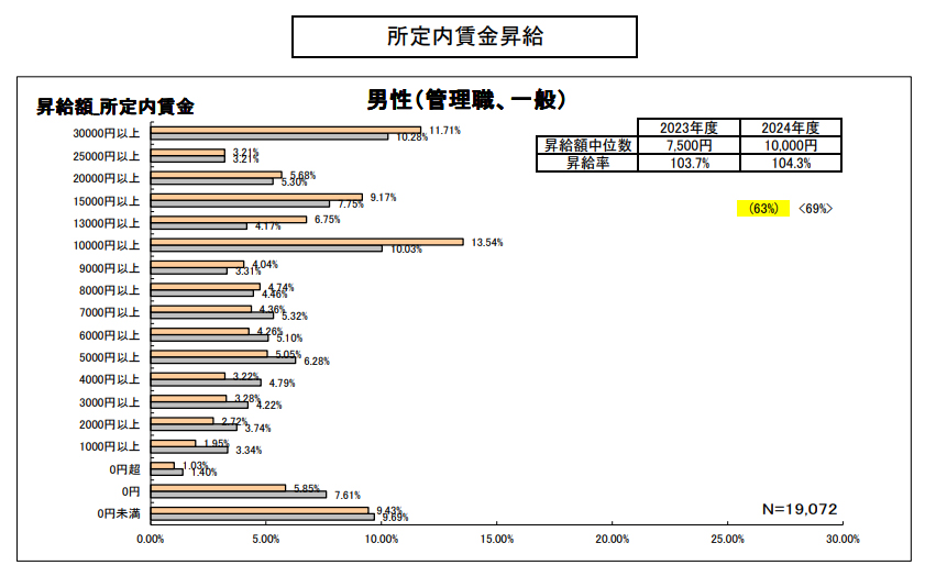 中小企業の多くは、ベースアップと定期昇給が分かれていない。強いて分けてみれば定期昇給のほかに、ベアが4000から5000円あったと推察できる。