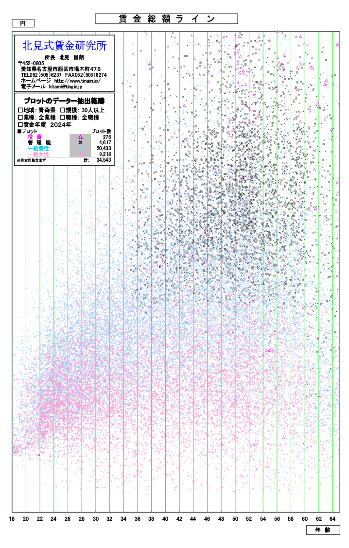 北見式賃金研究所は、中小企業に勤める数万人の賃金明細を集めました。それを基に各種の賃金グラフを作成し、ホームページ上にアップしました。